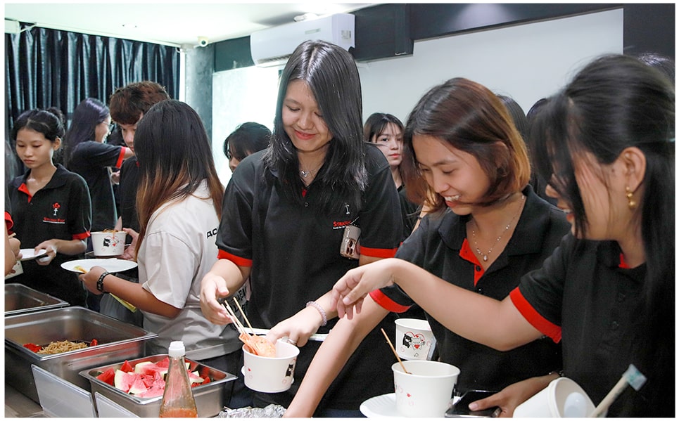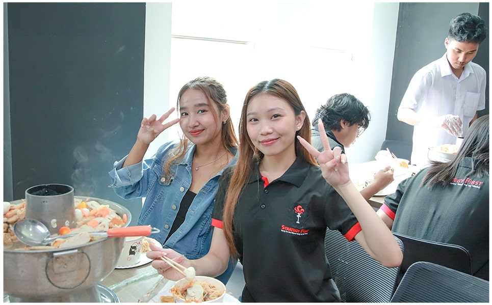 Strategy First International College ရှိ UK ဘွဲ့ကြို (Foundation) အတန်းများမှာ တက်ရောက်နေကြတဲ့ ကျောင်းသား၊ ကျောင်းသူတွေ ပိုမိုရင်းနှီးမှုရရှိစေဖို့နဲ့ သူငယ်ချင်းမိတ်ဆွေအသစ်များ တိုးပွားစေဖို့ ရည်ရွယ်ပြီး "Friendship Potluck Party” ကို နိုဝင်ဘာလ (၁၂) ရက်နေ့နှင့် နိုဝင်ဘာလ (၁၇) ရက်နေ့တွင် Strategy First Panchan Tower Teaching Centre မှာ ကျင်းပပြုလုပ်ခဲ့ပါတယ်။