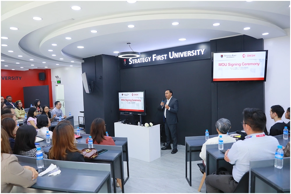 လူ့စွမ်းအားအရင်းအမြစ် ဖွံ့ဖြိုးတိုးတက်ရေးဆောင်ရွက်ခြင်း နားလည်မှုသဘောတူစာချွန်လွှာကို Strategy First International College မှ Founder/ President ဆရာဦးအောင်ချစ်ခင် နှင့် DKSH Myanmar မှ Head of Country Management, Mr. Ankur Pandey တို့မှ လက်မှတ်ရေးထိုးခဲ့ကြပါတယ်။ နားလည်မှုစာချွန်လွှာအရ Strategy First International College နှင့် DKSH Myanmar တို့ အတူပူးပေါင်းလက်တွဲကာ Strategy First International College ကျောင်းသား၊ကျောင်းသူများအတွက် ပညာရေးအခွင့်အလမ်းများ ပိုမိုတိုးမြှင့်လုပ်ဆောင်ကြရန်၊ မြန်မာနိုင်ငံအကျိုး သယ်ပိုးဆောင်ရွက်ရန် လုပ်ငန်းနှစ်ခုအကြား လူ့စွမ်းအားအရင်းအမြစ် ဖွံ့ဖြိုးတိုးတက်ရေး ဆိုင်ရာ သဘောတူညီမှုများ ရရှိခဲ့ကြပါတယ်။