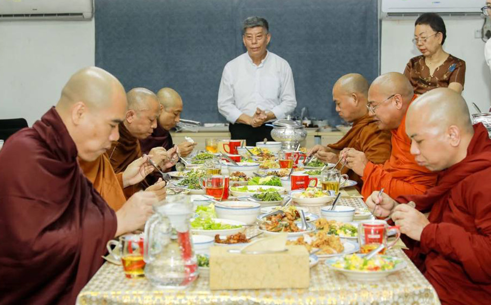 ထို့နောက် Strategy First (Teaching Centre-1) ၌ ဆရာတော် သံဃာတော်များကို သင်္ကန်းစသော လှူဖွယ်များဆပ်ကပ် လှူဒါန်းပြီး နေ့ ဆွမ်းဆပ်ကပ်လှူဒါန်းခဲ့ကြပါသည်။ ကြွရောက်လာသော ဧည့်သည်တော်များ၊ ကျောင်းသား၊ ကျောင်းသူများကို နေ့လယ်စာဖြင့် တည်ခင်းဧည့်ခံခဲ့ပါသည်။