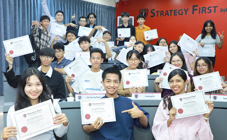 သင်တန်းပြီးဆုံးအောင် တက်ရောက်ပြီး Activities တိုင်းတွင် ပါဝင်သူများအားလုံးကို Strategy First မှ Certificate များ ပေးအပ်ချီးမြှင့်ခဲ့ပါသည်။။
