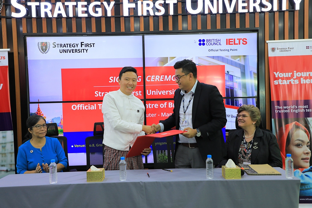Strategy First International College နှင့် British Council တို့အကြား Strategy First (Mandalay Teaching Center-2) ကို IELTS on Computer Testing Point အဖြစ် ဆောင်ရွက်ရန် သဘောတူစာချွန်လွှာ လက်မှတ်ရေးထိုး