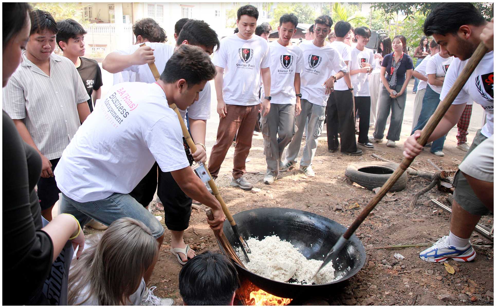 Strategy First International College Mandalay ၏ UK Bachelor’s Programmes အသီးသီးတွင် တက်ရောက်နေကြသော ကျောင်းသား၊ ကျောင်းသူများ စုပေါင်း ပါဝင် ဆင်နွှဲခဲ့သည့် “ပဉ္စမအကြိမ်မြောက် ထမနဲပွဲ”