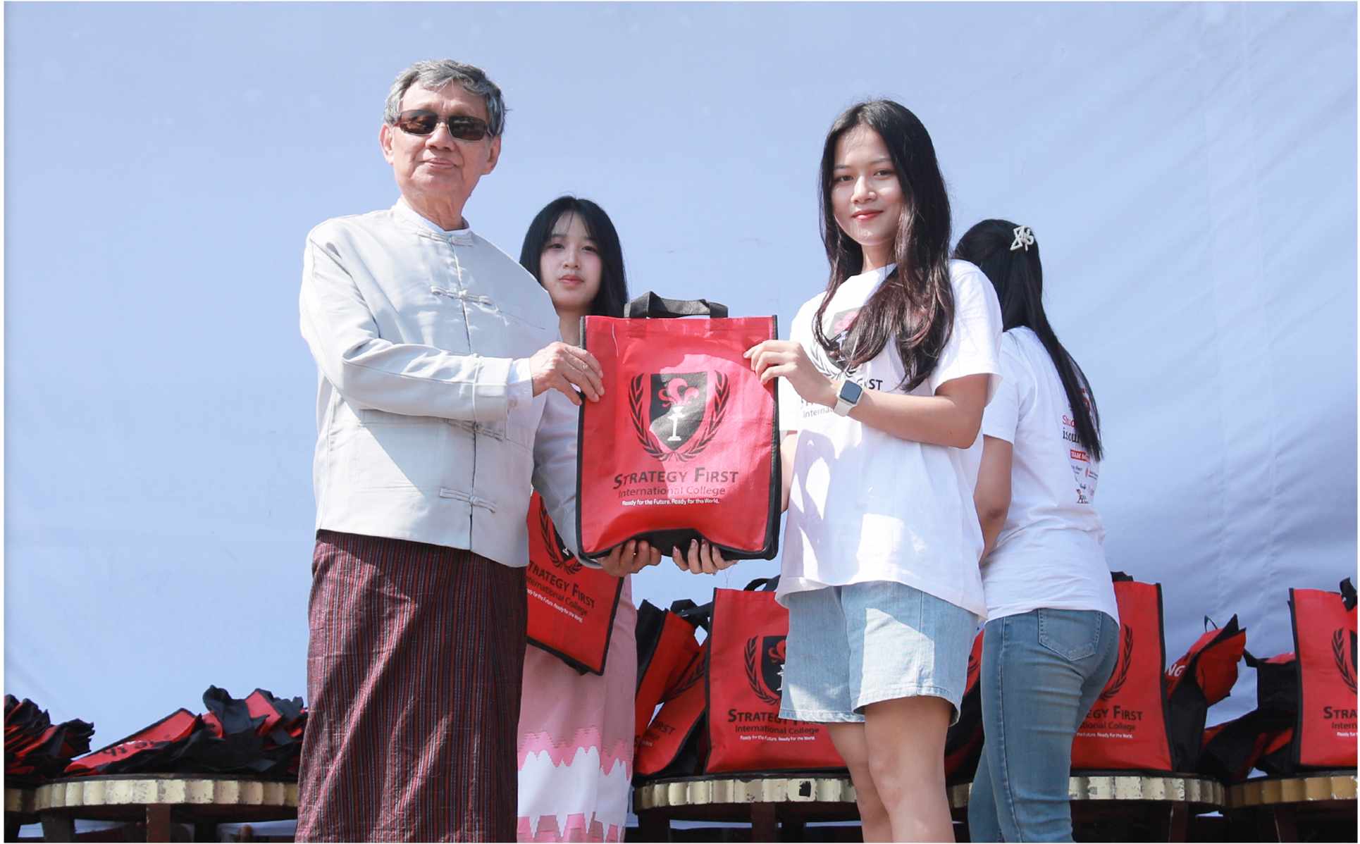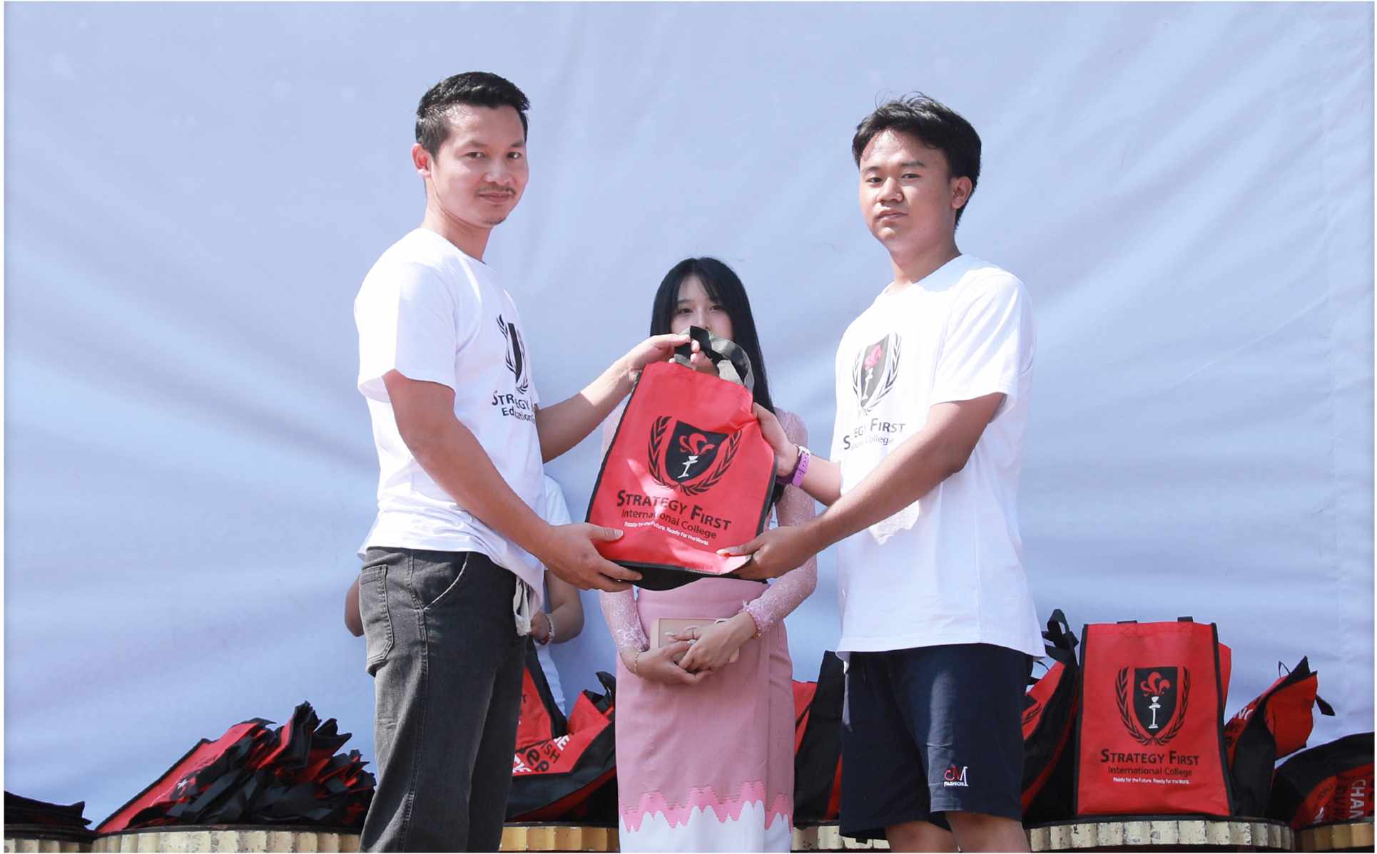 Strategy First International College ၏ Founder & President ဦးအောင်ချစ်ခင်နှင့် ဆရာကြီးဆရာမကြီးများ တာဝန်ရှိသူများ မှ အခမ်းအနားကို ဖဲကြိုးဖြတ်ဖွင့်လှစ်ပေးခဲ့ပါသည်။