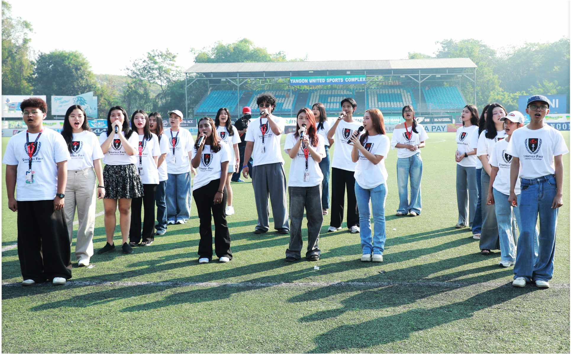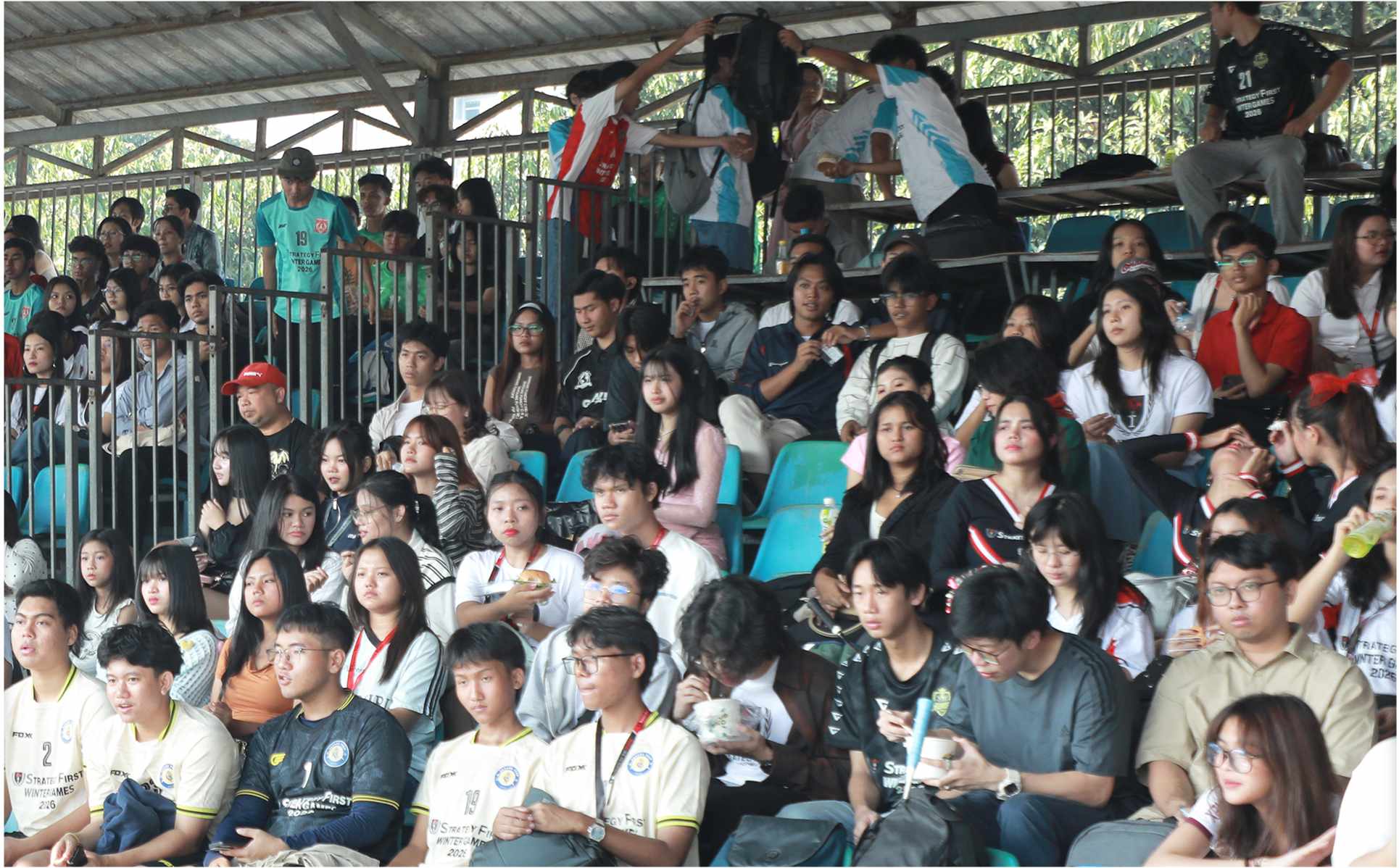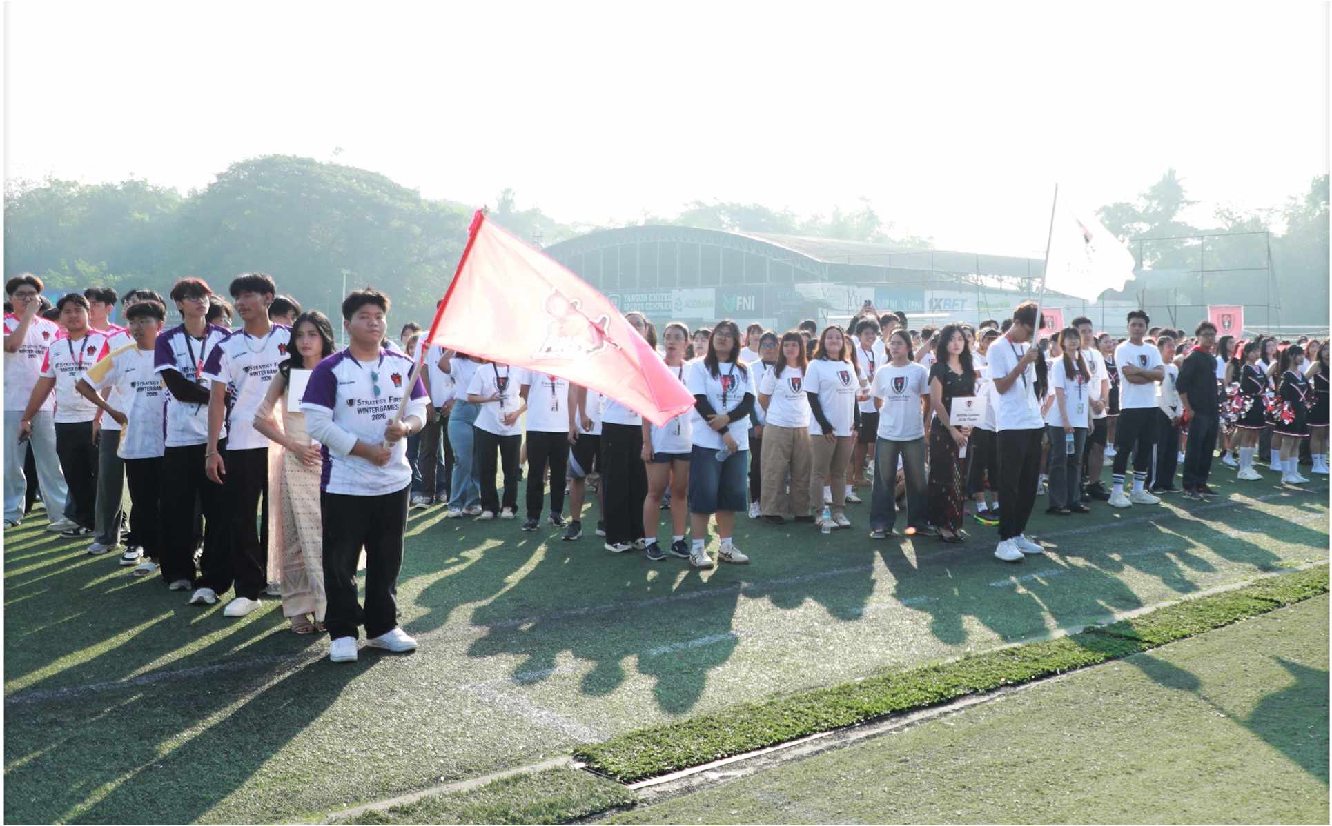 Strategy First Winter Games 2026 – The Opening Ceremony သို့ အားပေးကြည့်ရှုရန် ရောက်ရှိလာသော ကျောင်းသား၊ ကျောင်းသူများ ပွဲကြည့်စင်တွင် နေရာယူပြီးနောက် ဖွင့်ပွဲအခမ်းအနားကို စတင်နိုင်ရန်အတွက် ပြိုင်ပွဲဝင်ကျောင်းသားများ၊ သက်ဆိုင်ရာအသင်းနှင့် ပြိုင်ပွဲအသီးသီးကိုယ်စားပြု ကျောင်းသား/သူလေးများနှင့် Volunteers အဖွဲ့ဝင် ကျောင်းသားများလည်း အခမ်းအနားကျင်းပရာ ကွင်းအတွင်းတွင် အစီအစဉ်တကျ နေရာယူခဲ့ကြပါသည်။