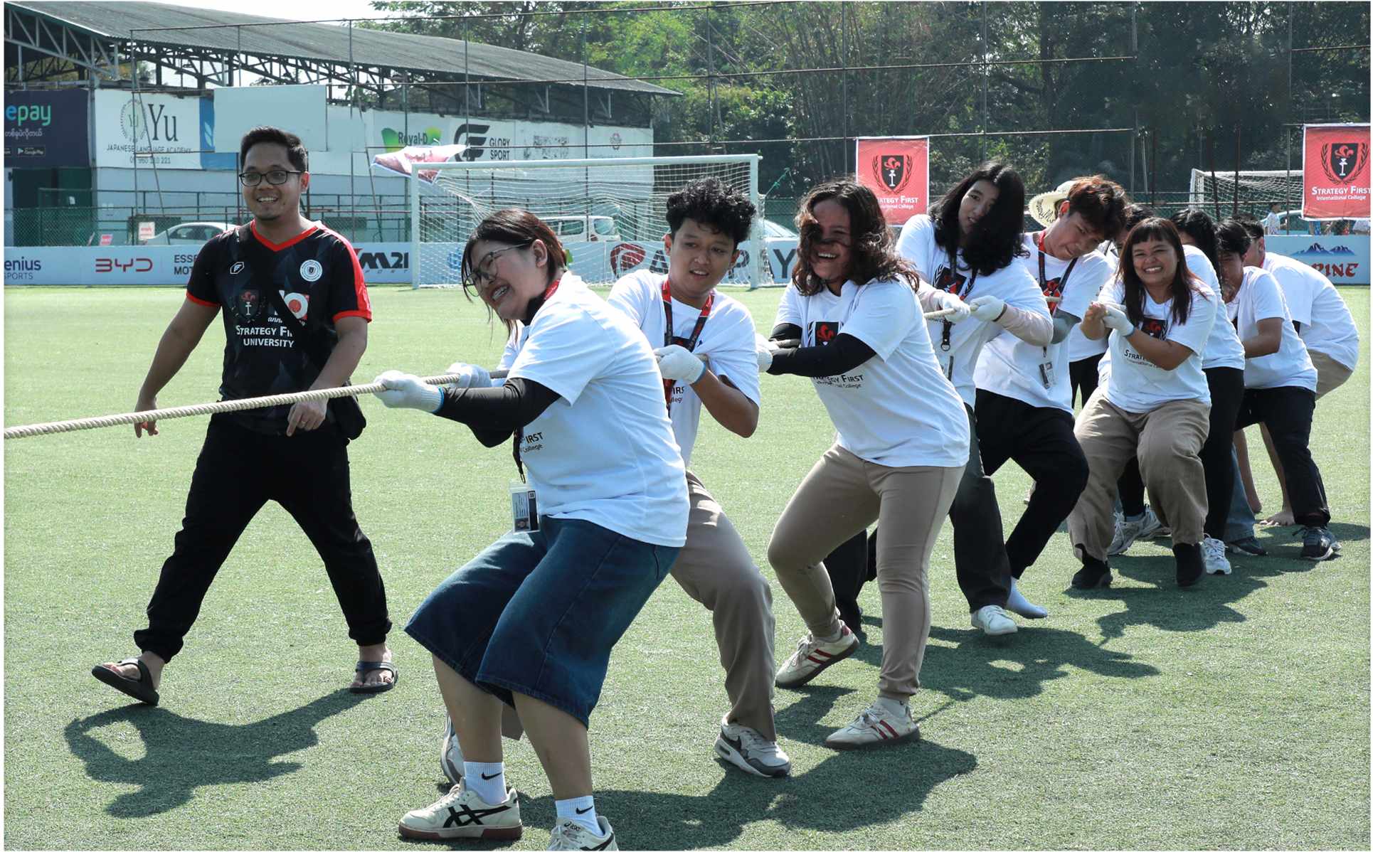 အပြေးပြိုင်ပွဲ၊ မုန့်စားပြိုင်ပွဲ၊ ခြေငါးချောင်းထောက်ပြိုင်ပွဲ၊ လွန်ဆွဲပြိုင်ပွဲ အစရှိသည့် အားကစားနည်းများကို Strategy First ကျောင်းသား၊ ကျောင်းသူများမှ စုပေါင်းပြီး ပျော်ပျော်ရွှင်ရွှင်စည်းစည်းလုံးလုံး ပါဝင်ယှဉ်ပြိုင်ခဲ့ကြပြီး Strategy First ကျောင်းသားဘဝ ပျော်ရွှင်ဖွယ်ရာအမှတ်တရများကို ချစ်ခင်ရင်းနှီးစွာ ပါဝင်ဖြတ်သန်းခဲ့ကြပါသည်။