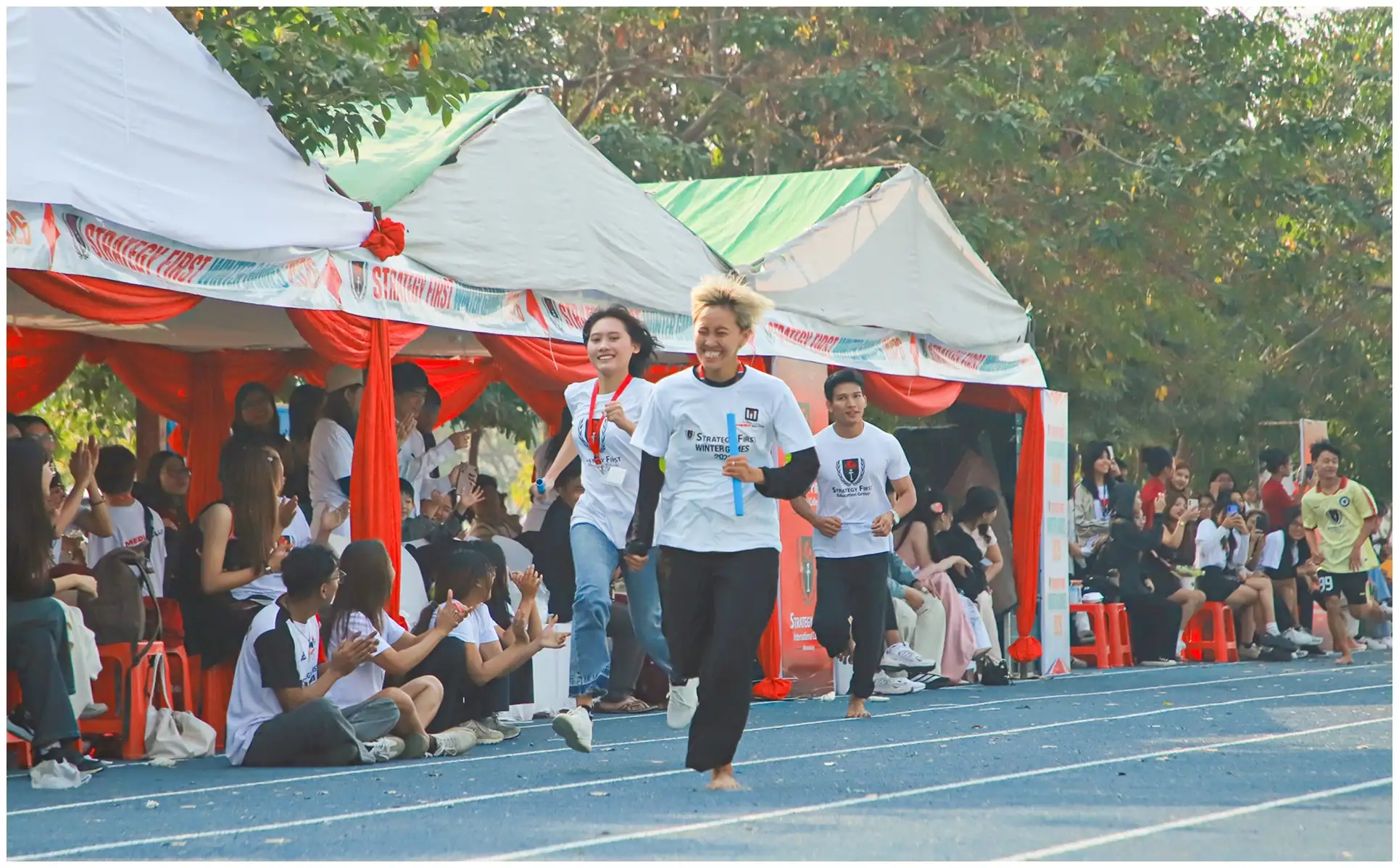 လက်ဆင့်ကမ်းအပြေးပြိုင်ပွဲ၊ သံပုရာသီး ဇွန်းကိုက်ပြိုင်ပွဲ၊ ပူဖောင်းပုတ် အဝတ်ဝတ်ပြိုင်ပွဲ၊ လွန်ဆွဲပြိုင်ပွဲ အစရှိတဲ့ အားကစားနည်းတွေကို Strategy First ကျောင်းသား၊ ကျောင်းသူများ စုပေါင်းပြီး ပျော်ပျော်ရွှင်ရွှင်စည်းစည်းလုံးလုံး ပါဝင်ယှဉ်ပြိုင်ခဲ့ကြပြီးတော့ Strategy First ကျောင်းသားဘဝ ပျော်ရွှင်ဖွယ်ရာအမှတ်တရတွေကို ချစ်ခင်ရင်းနှီးစွာ ပါဝင်ဖြတ်သန်းခဲ့ကြပါတယ်။